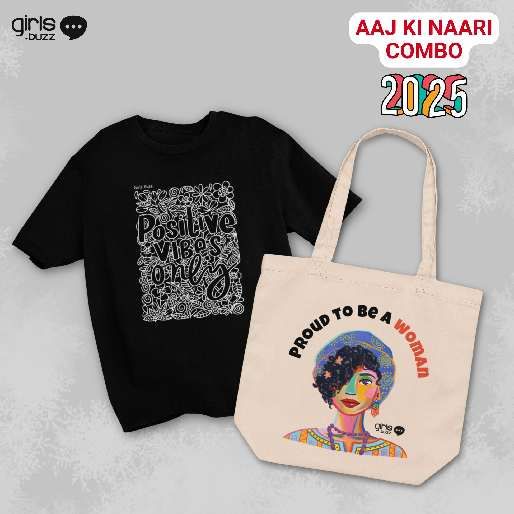 Celebrate the spirit of modern womanhood with the Aaj Ki Naari Combo—a powerful duo designed for women who are unstoppable and unapologetic. This T-shirt proudly displays the empowering "Aaj Ki Naari" design, blending comfort and boldness. Available in a range of sizes, it’s the perfect way to wear your pride and showcase your resilience. The matching tote bag is an everyday essential with a striking "Aaj Ki Naari" print. Made from durable, eco-friendly materials, it’s roomy enough for all your essentials—whether you’re conquering the office, the gym, or the streets. For the woman who owns today and shapes tomorrow, this combo is ideal as a gift or a personal reminder of your strength and spirit. Wear it, carry it, and embrace your inner Aaj Ki Naari!