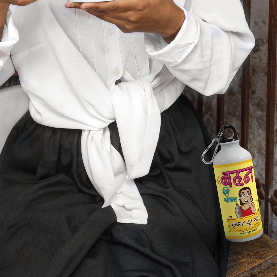 The Girls Buzz "Behen Ki Bottle" is the perfect gift for Sibling's Day or sister's birthday, featuring a print that signifies her exclusive ownership of this special bottle. This unique design showcases illustrations from the "Hello Mili Comic Indian Family Collection," adding a personalized touch to the gift.
