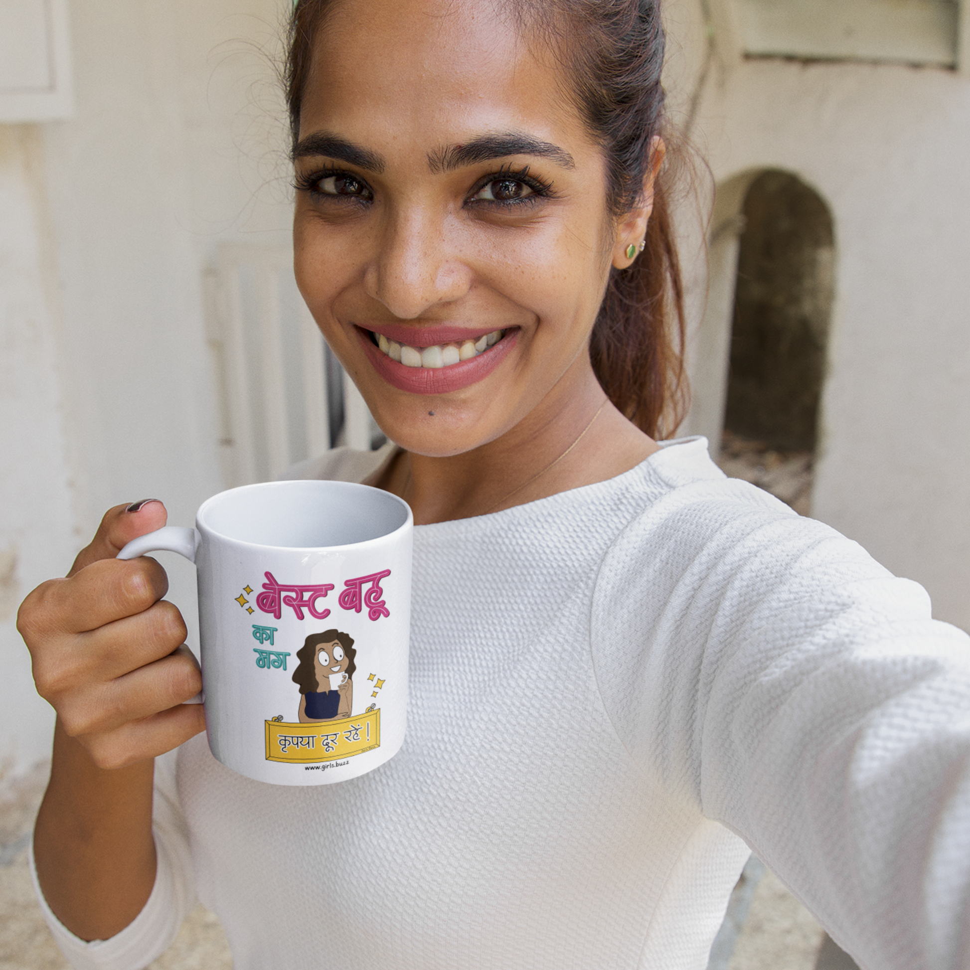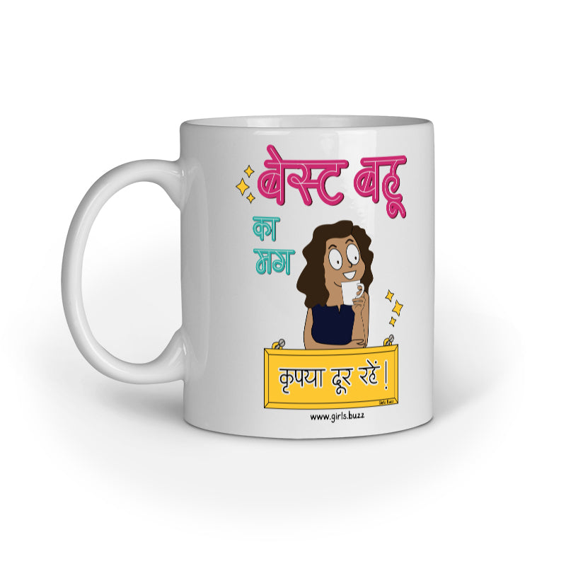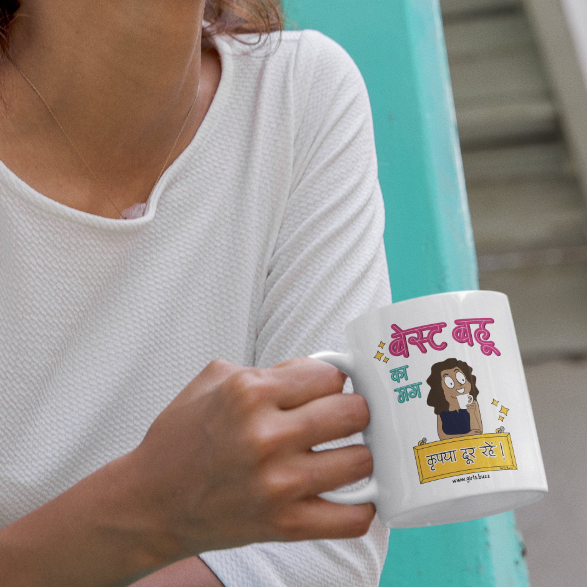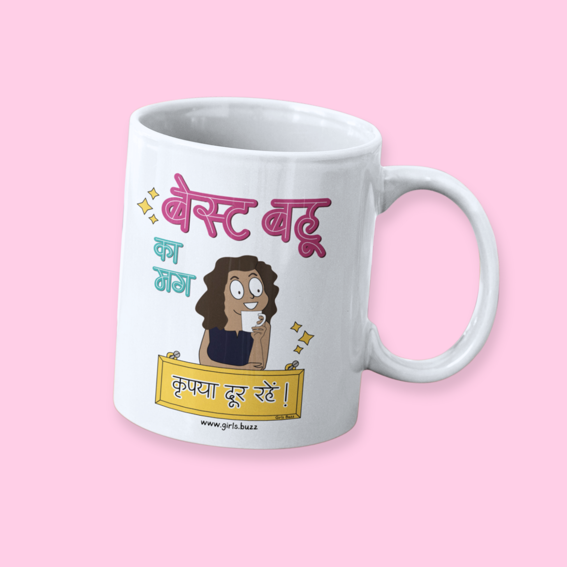 The perfect gift for the best bahu who is independent, happy, and always radiating positivity! This ceramic mug features a quote by the Hello Mili character that breaks stereotypes and celebrates the modern bahu. "Bahu toh apne dreams ke saath jeeti hai, chai ke saath!" (The bahu lives her dreams along with her chai!) Show your love and appreciation to your bahu this Mother's Day or on her birthday with this thoughtful gift idea. Girls Buzz premium quality printed ceramic coffee mugs are available at the best prices online.