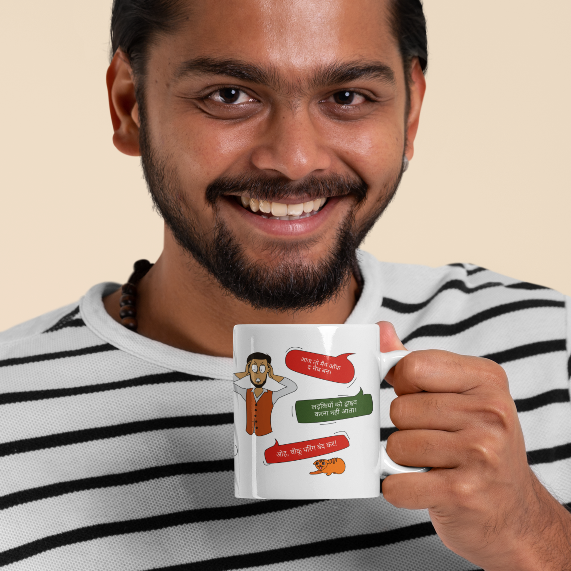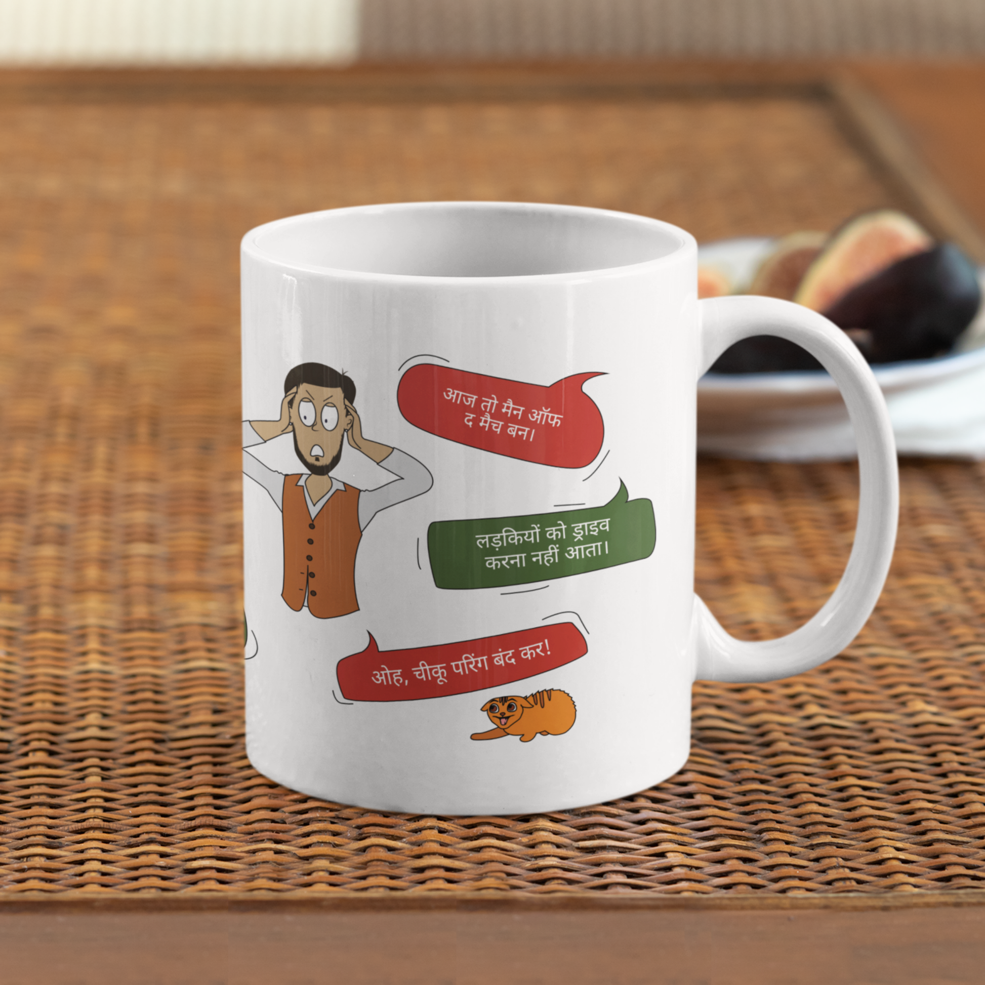 The complaints of a brother are never-ending, right? Capture it all with this special sister-brother series mug from Hello Mili comics. We've packed all the possible complaints into the "Bhai and His Complaints" mug with Hindi quotes for a funny, quirky touch. This mug is the perfect gift for your naughty, loving, and possessive brother on his birthday or Rakshabandhan. Make your brother feel extra special with a sense of humor with this unique Indian family mug collection by Girls Buzz.