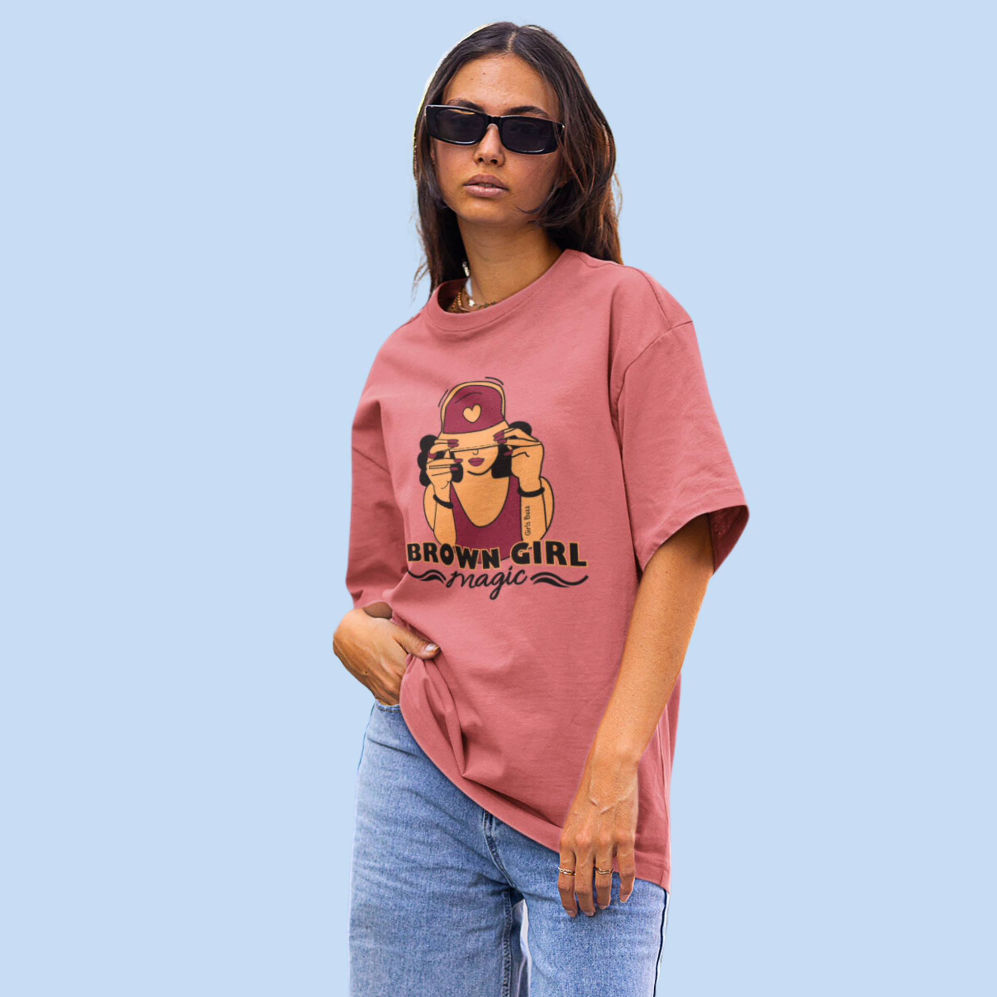 Crafted from soft, high-quality fabric, this oversized tee is perfect for making a statement while keeping comfort in mind. Whether you’re at home or out with friends, wear this tee to inspire pride in your identity and to show the world that brown girls can achieve greatness.