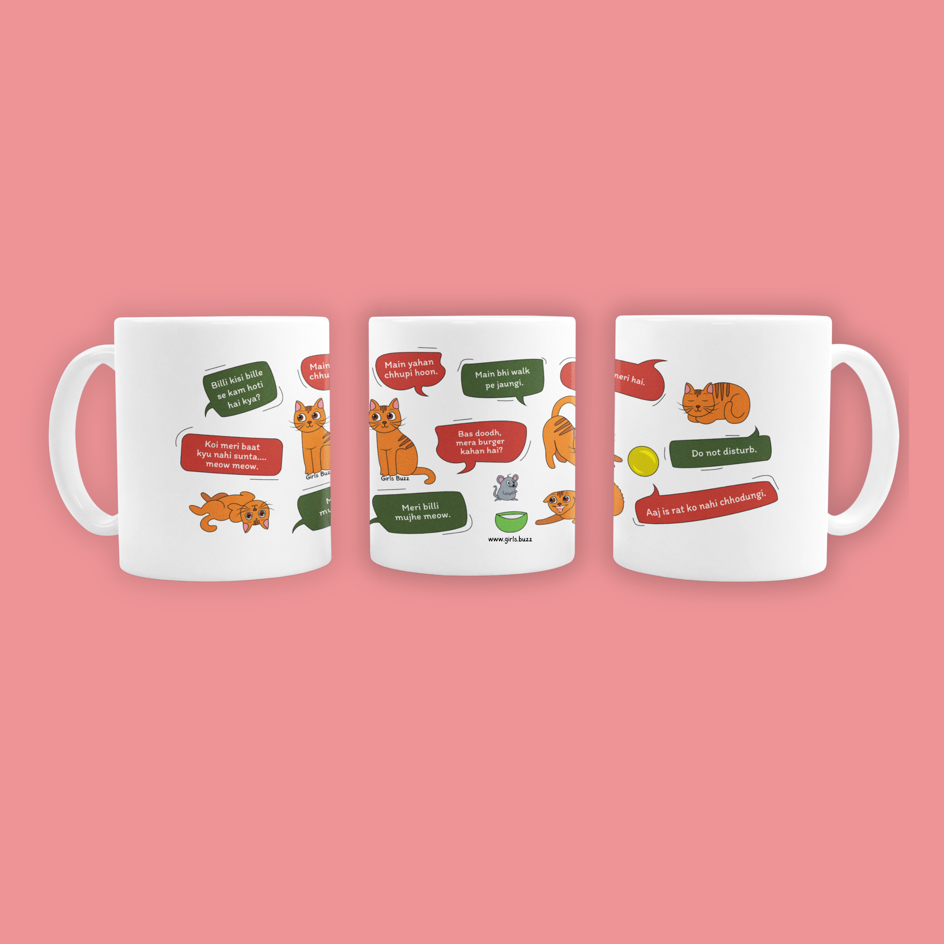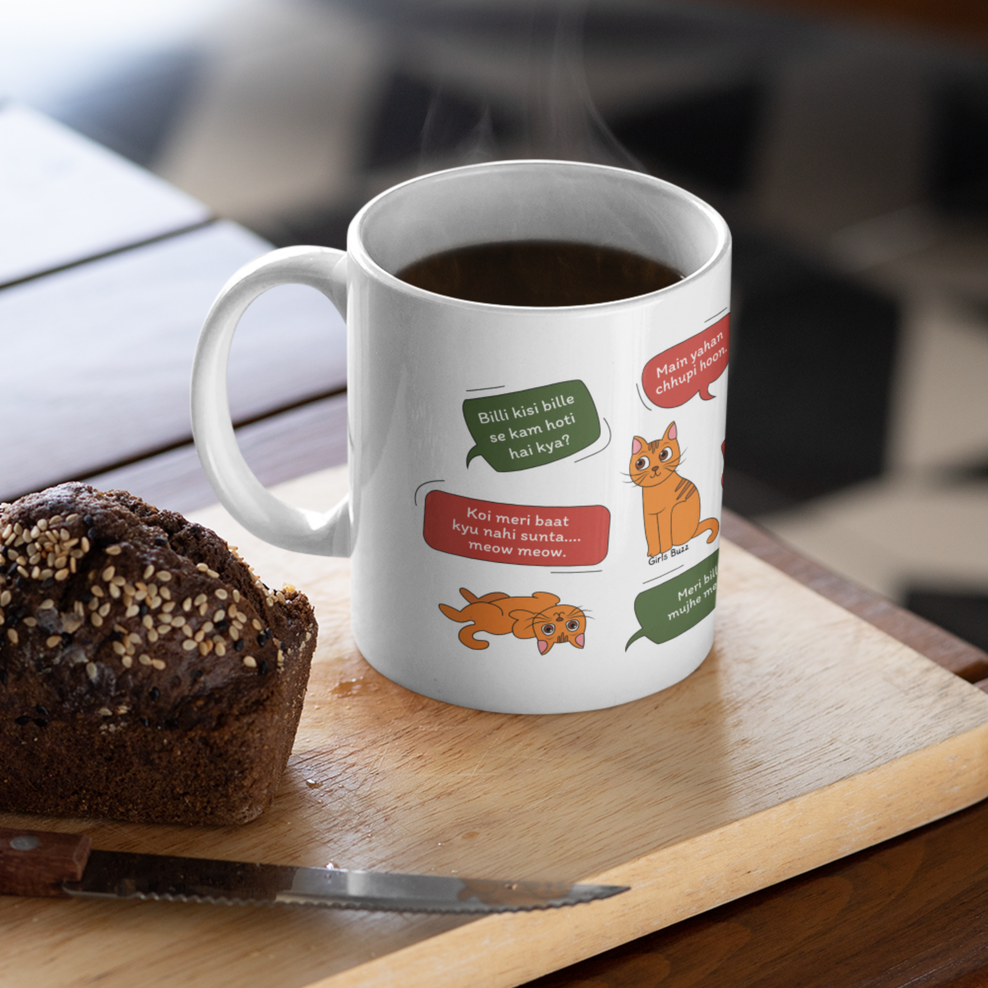 The Hello Mili Pet Lover Series 'Cat and Her Complaints' coffee mug design is for all the pet parents who love cats. The quirky, funny twist quotes in Hinglish are written from a cat's point of view. This coffee mug is a must-have if you are an animal lover and love being around furry beauties. The mug features Mili's cat Cheeku, filled with her mind's complaints about life. This special pet mug is a perfect gift for anyone who loves pets on their birthday or any day.
