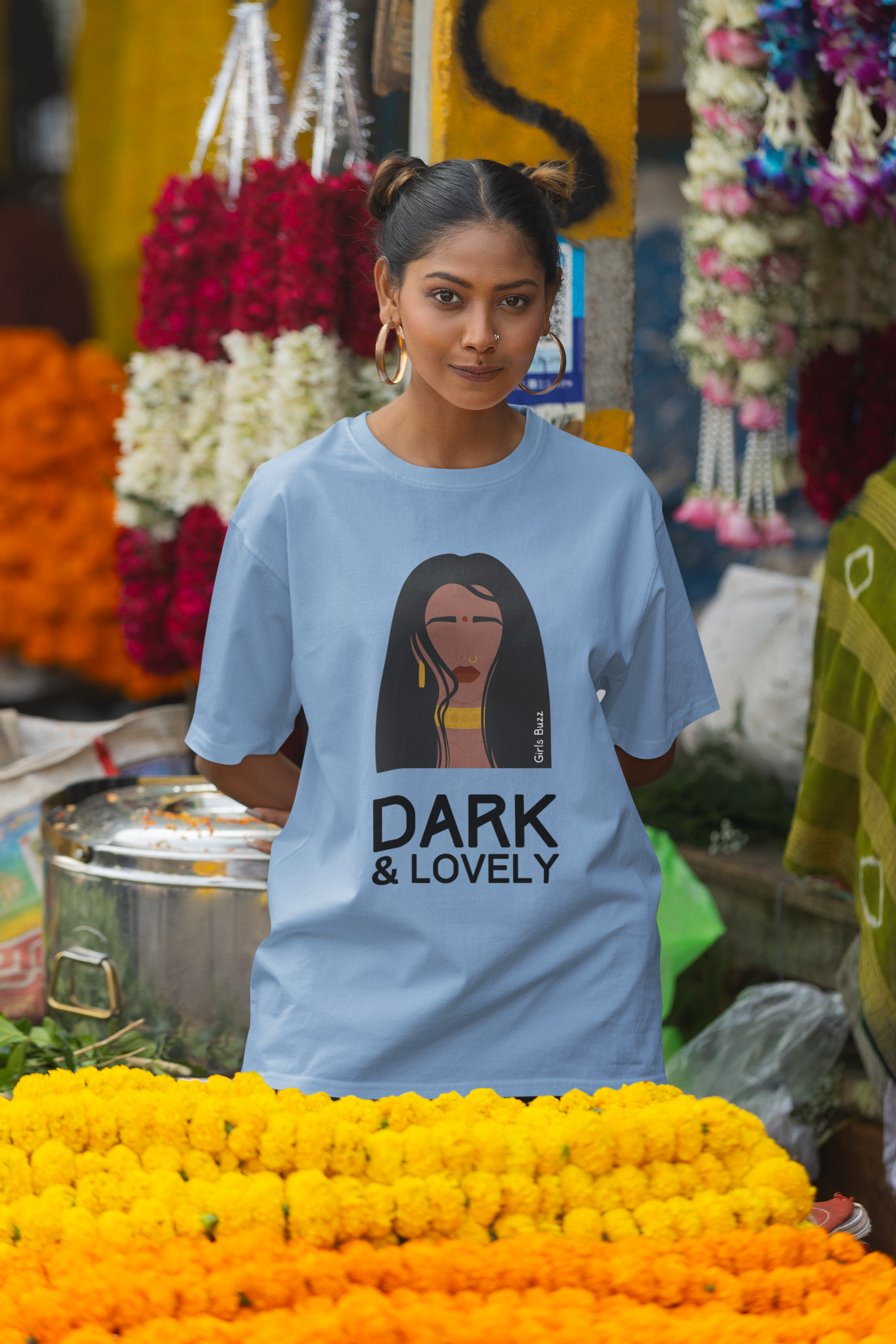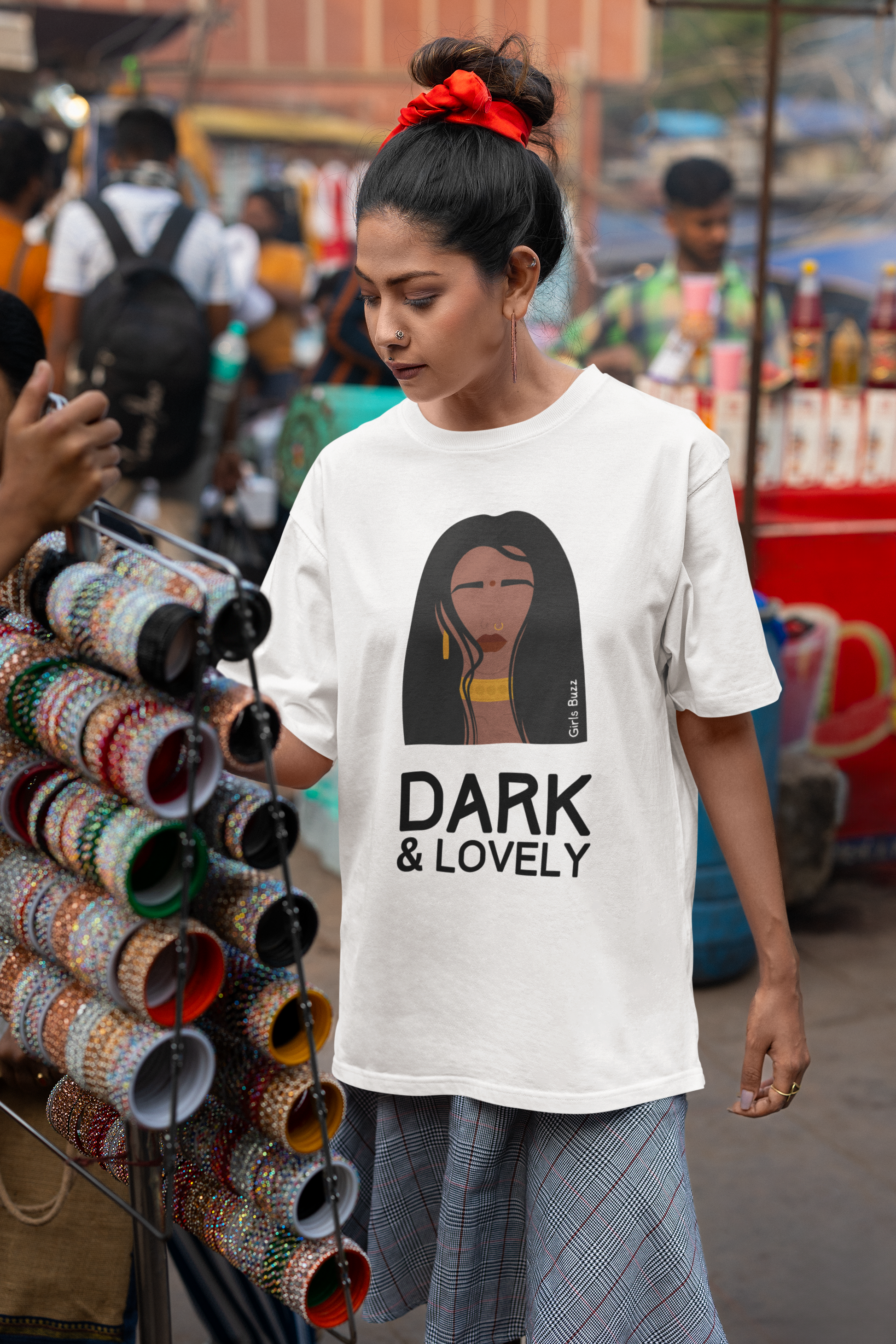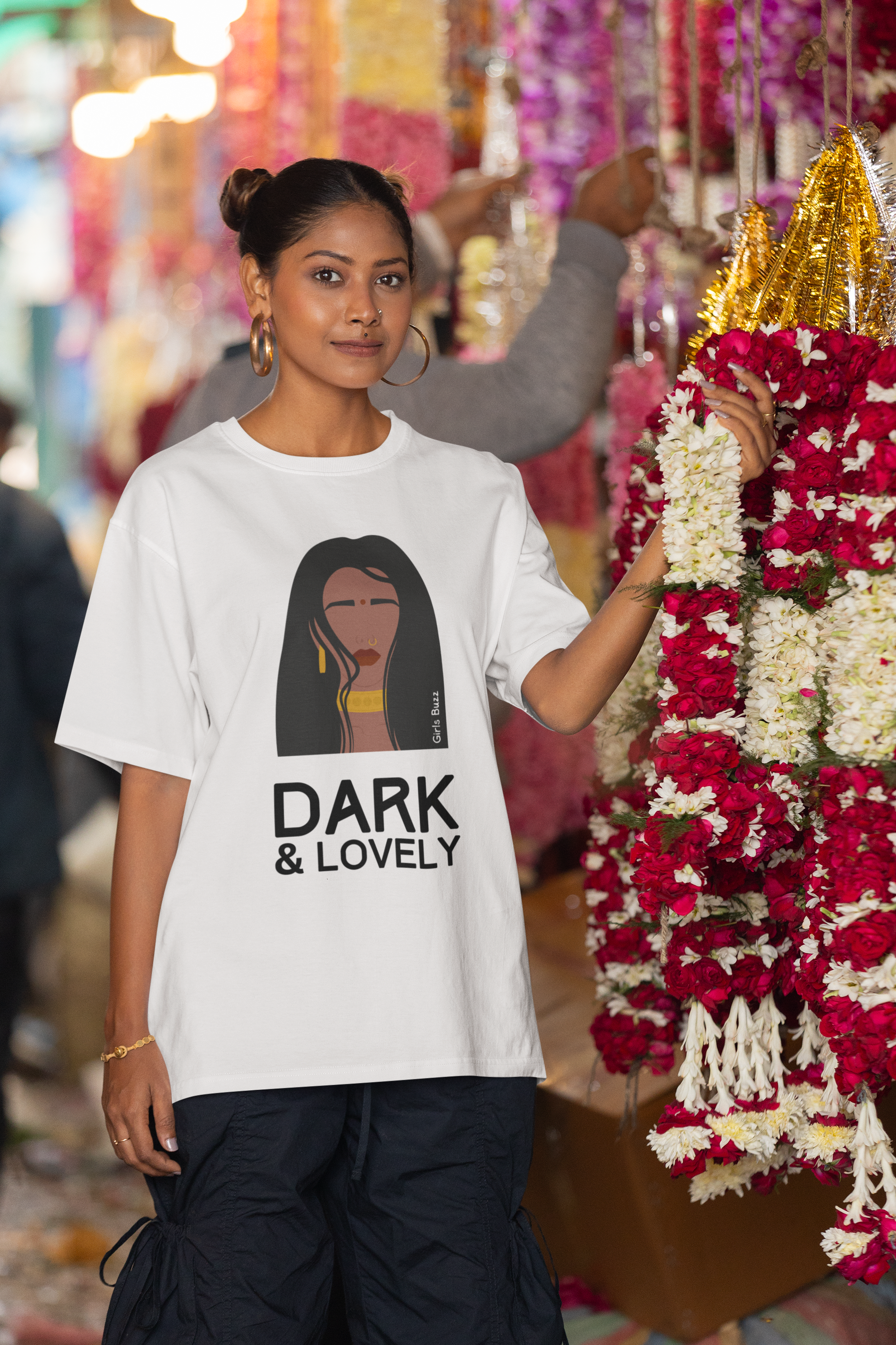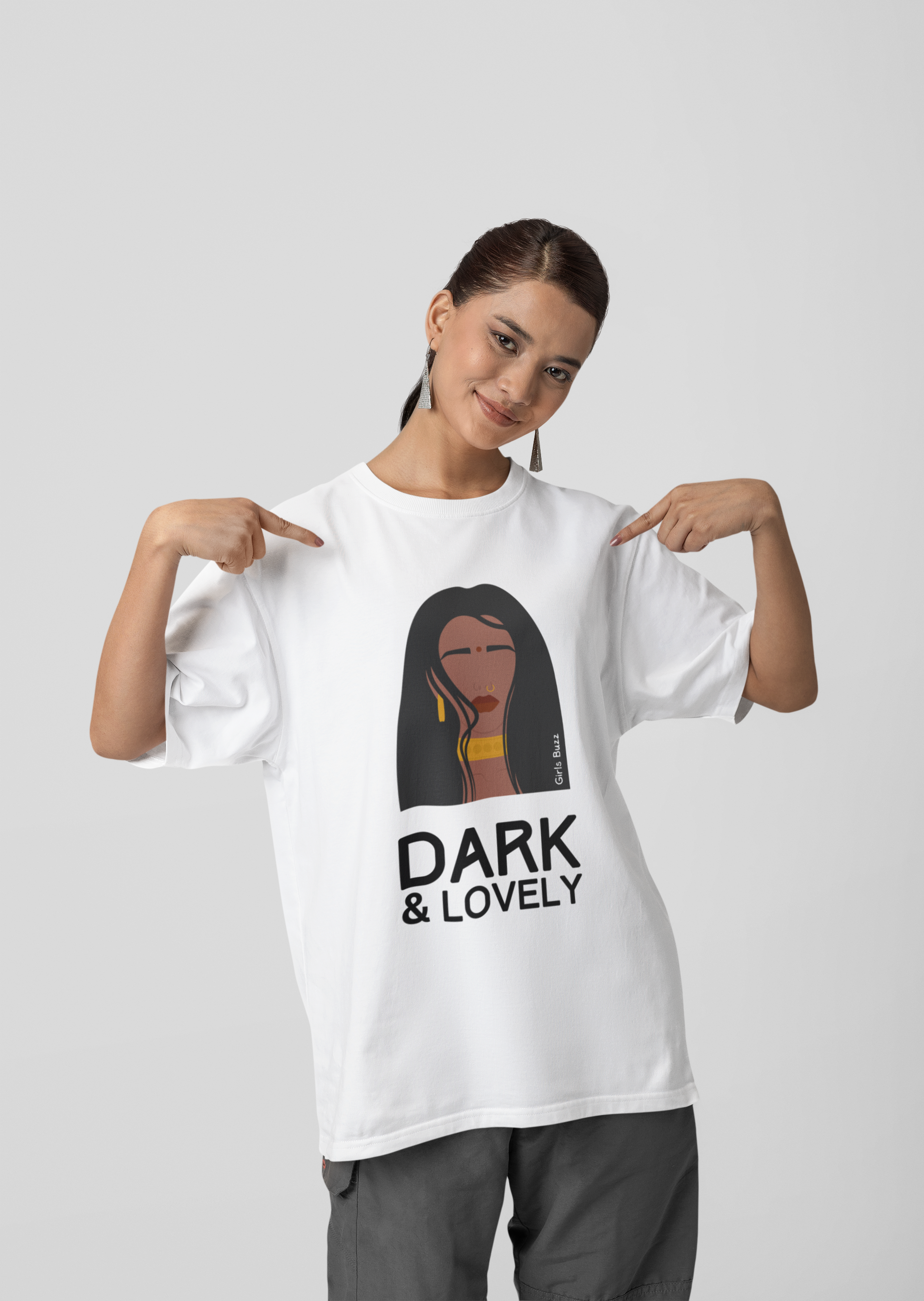 The "Dark and Lovely" oversized tee by Girls Buzz carries a powerful message, challenging the idea that fair skin is the sole standard of beauty. It champions the beauty of darker skin tones, rejecting the pressure to alter or lighten one's complexion. With this bold statement, we stand against colorism and promote body positivity. Let's celebrate the diversity of skin tones and strive to build a more inclusive world. This perfect motivational slogan tee inspires and empowers women, teaching them to love their bodies.