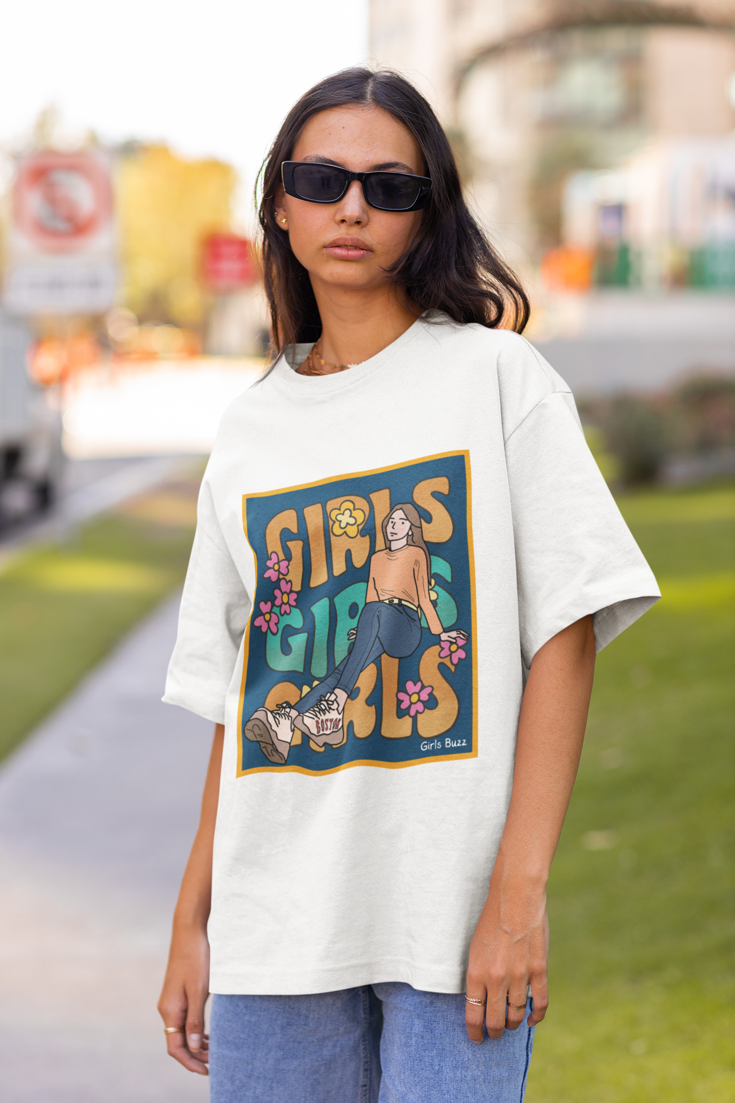 This oversized t-shirt is super comfortable and perfect for summer wear. Why conform to societal standards? Be bold and wear what you like. The oversized Girls Buzz t-shirts are ideal for nightwear, daywear, street style, college fashion, or informal dates. Wear it anytime and showcase your feminist side to the world.