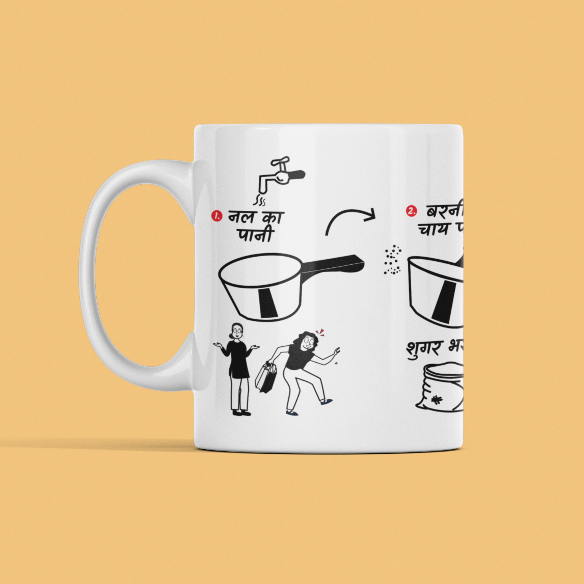 Do you know the recipe for Miliās special adrak wali chai? Now you can, with the 'Mili Special Masala Chai' mug! This one-of-a-kind ceramic mug from Girls Buzz features a clear, step-by-step diagram of Miliās chai-making processācomplete with a kick of ginger. Perfect for tea lovers, itās more than just a mug; itās your guide to brewing the perfect cup of masala chai. Whether for yourself or as a thoughtful gift, this mug is sure to delight. Check out our premium collection of printed mugs online at amazing prices and bring Miliās chai magic to your mornings!
