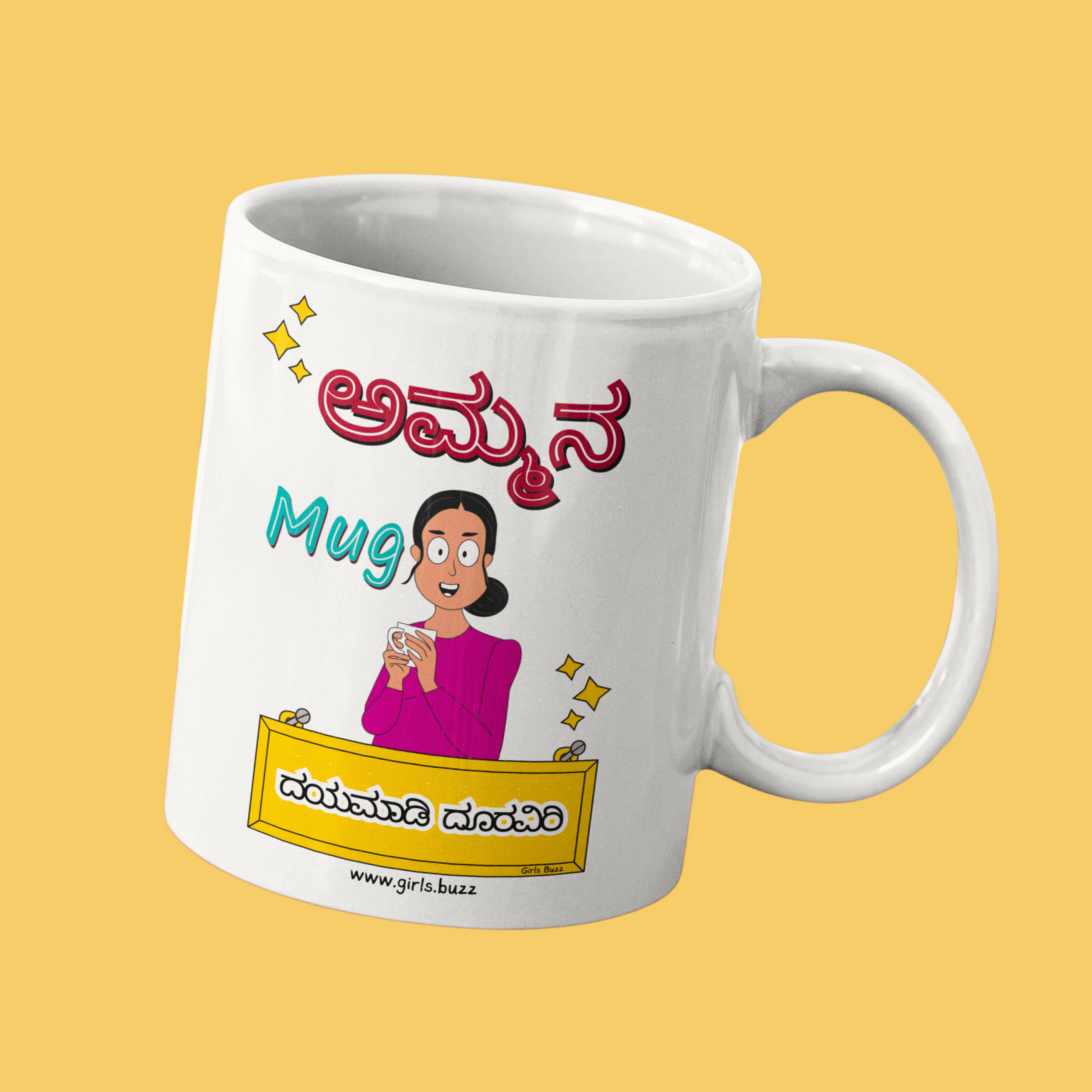 The perfect gift for moms who treasure their possessions is a ceramic mug featuring a quote by the Hello Mili character. Show love to your mother/Amma this Mother's Day or on her birthday with this thoughtful gift idea. The mug features the quote in Kannada. Girls Buzz premium quality printed ceramic coffee mugs are available at the best prices online.