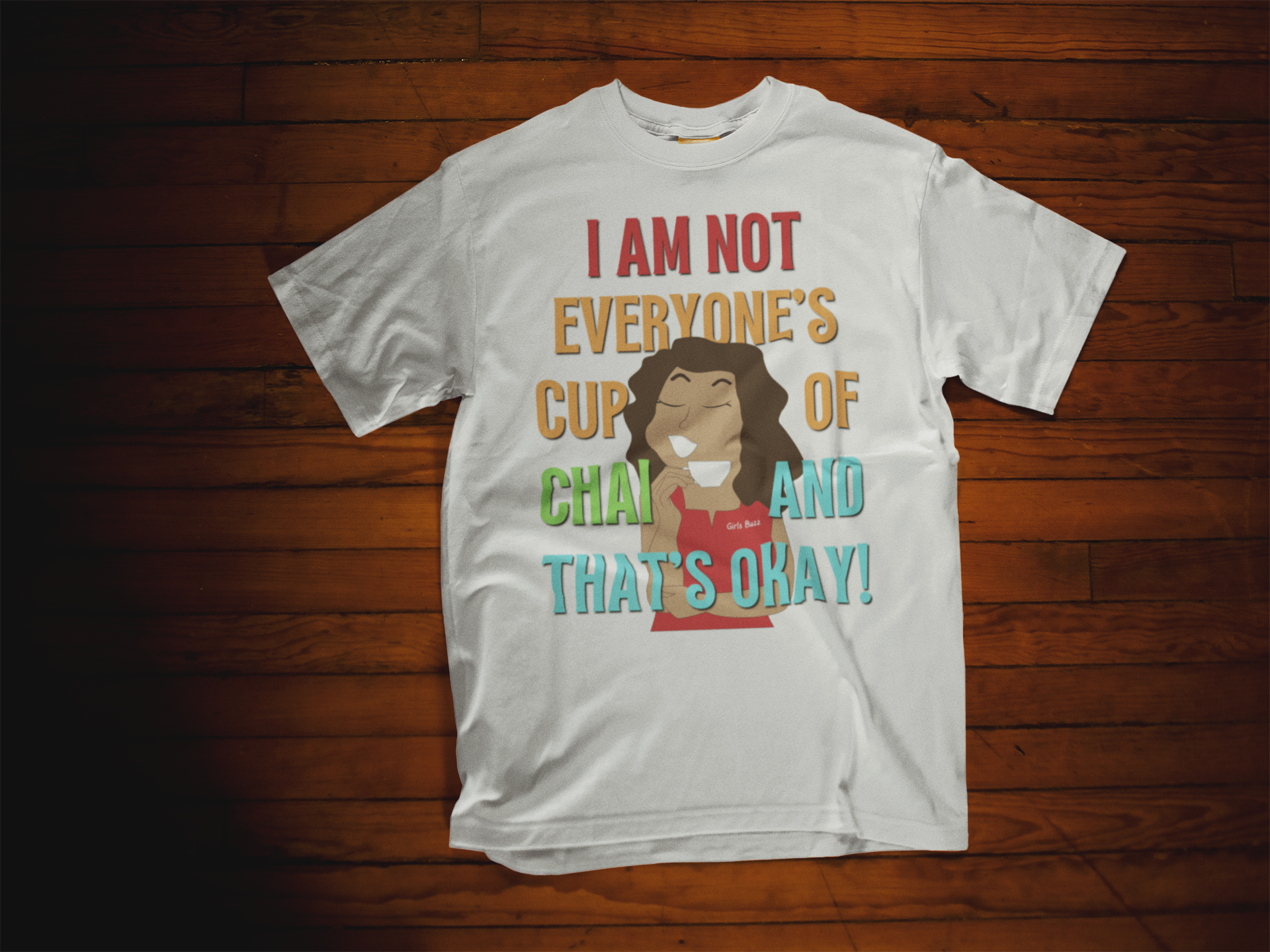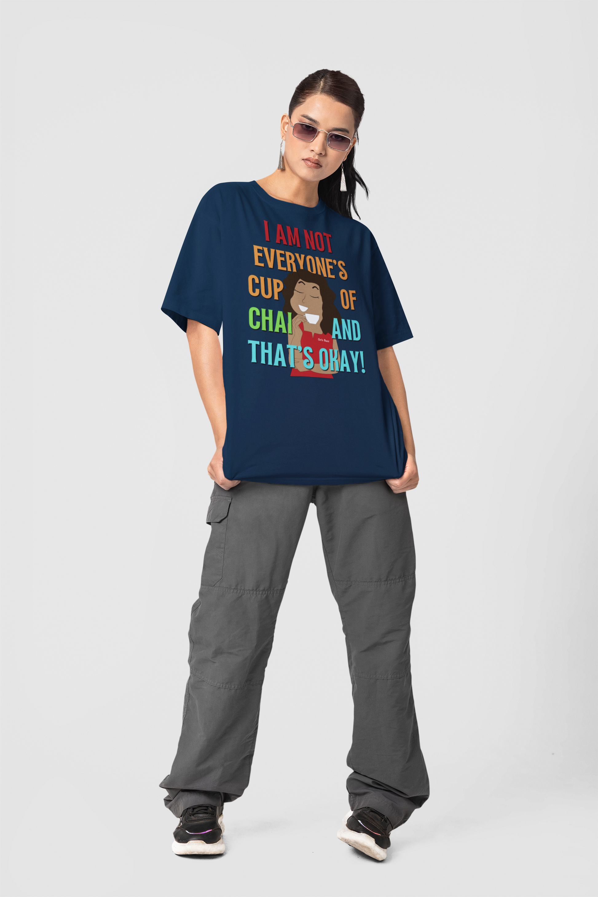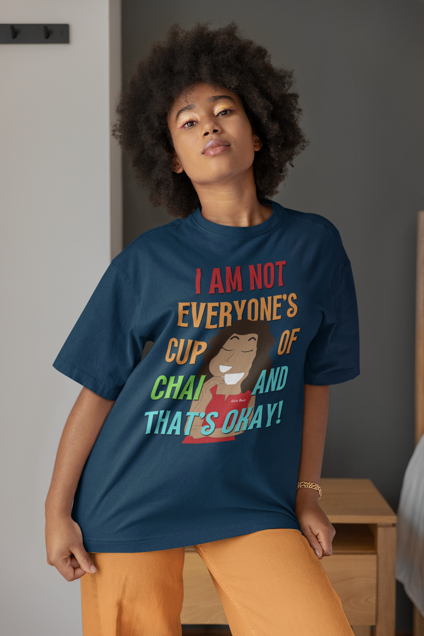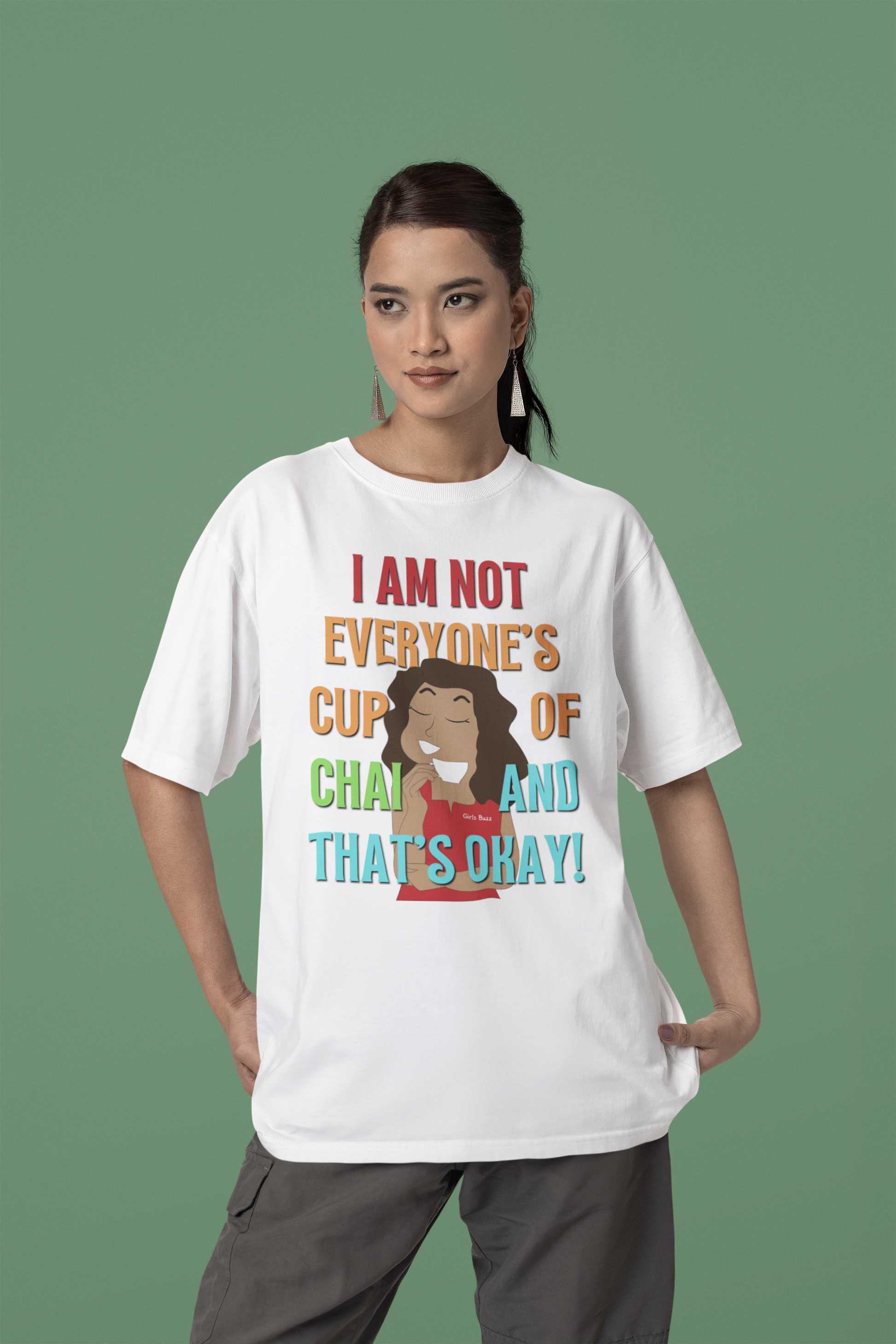 The 'Not Everyone's Cup of Chai' baggy fit t-shirt features Mili from the feminist comic series, capturing the essence of the modern woman. With its quirky design and witty quote, it highlights the challenges women face today. This comfortable loose-fit tee is perfect as maternity wear or for plus-size women, allowing you to express your authentic self with style and confidence.