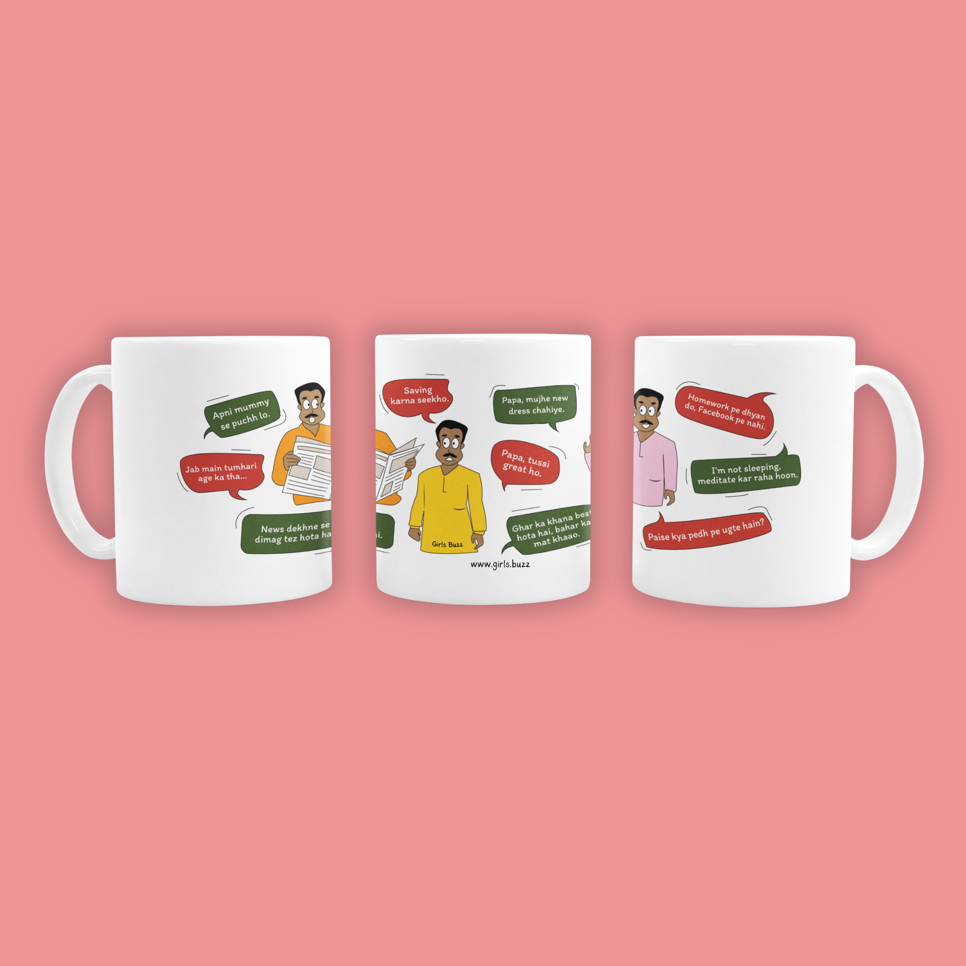 The perfect gift for dads: a printed ceramic mug featuring the complaints our dads put up with, which we can all relate to. The Hello Mili's dad character is an embodiment of the love and support our fathers shower on us. Show your Appa, Papa, or Dad appreciation this Father's Day or on his birthday with this thoughtful gift idea. Our premium-quality printed mugs are available at the best prices online and make the perfect birthday gift idea.
