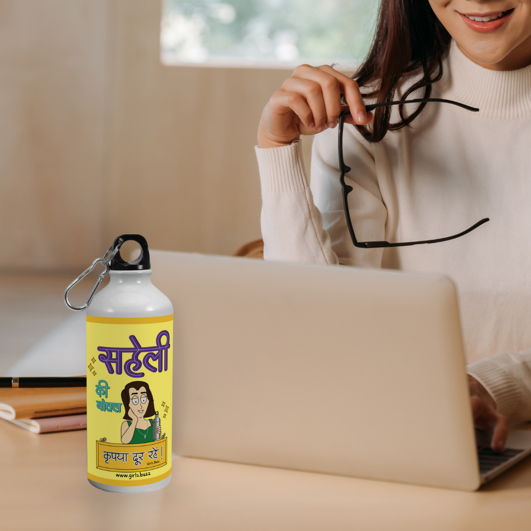 The Girls Buzz "Saheli Ki Bottle" is the perfect gift for Friendship Day or best friend's birthday, featuring a print that signifies her exclusive ownership of this special bottle. This unique design showcases  illustrations from the "Hello Mili Comic Indian Family Collection," adding a personalized touch to the gift.