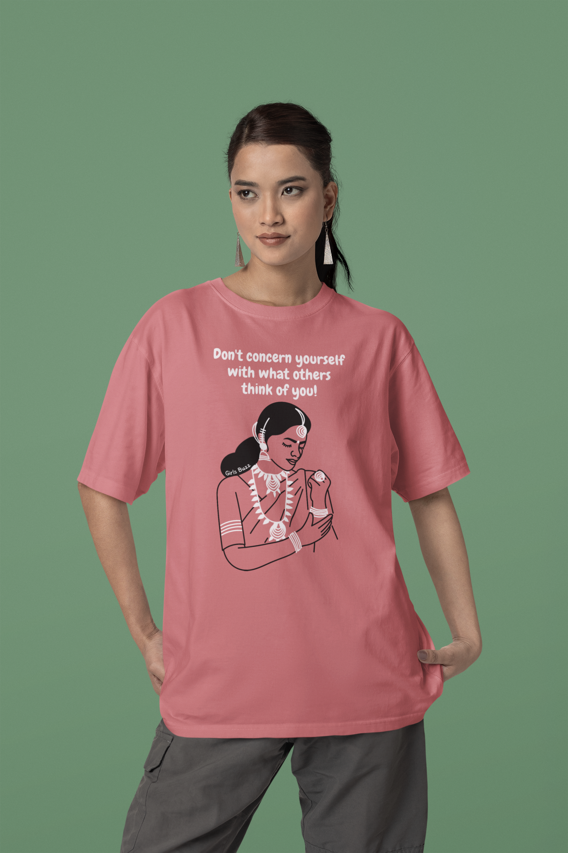The "Sanskaari Girl" oversized t-shirt challenges the very notion of such stereotypes. Why should traditional labels restrict a girl's potential or limit her actions? Women's opinions should be valued just as much as anyone else's.