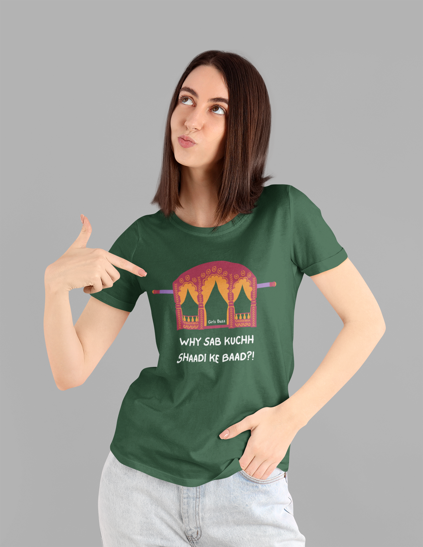 Wear it with pride and let the world in on the secret that life's most exciting moments truly begin "Sab Kuch Shadi Ke Baad."