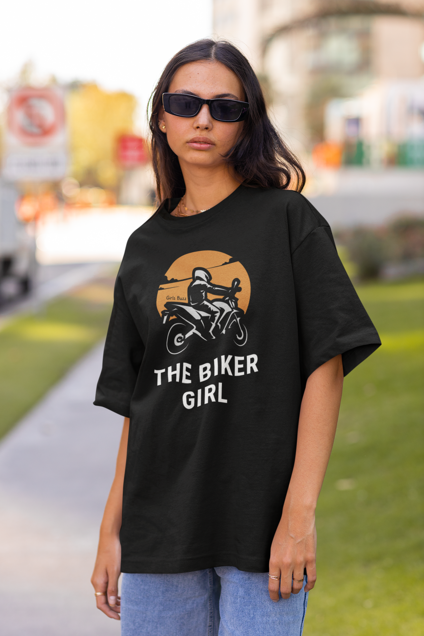 The "Biker Girl" oversized black tee by Girls Buzz is a testament to the fact that girls can love and have a passion for bikes too. This is not reserved for men alone. So, we dedicate this baggy, super comfy t-shirt to all the biker girls who are living their dreams.