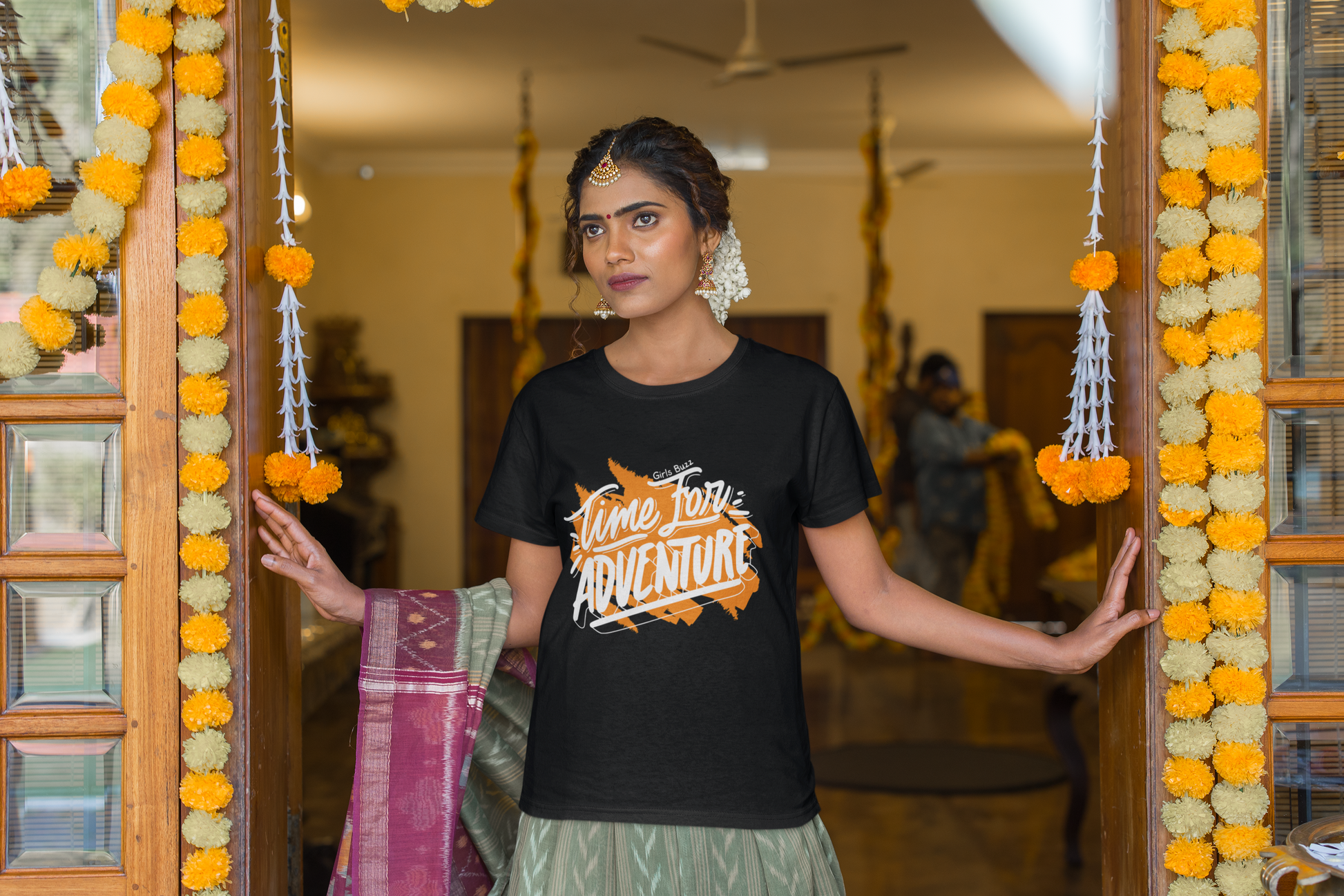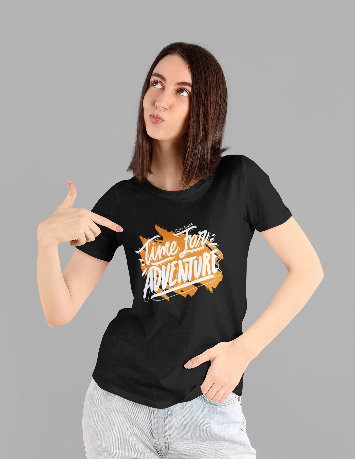 Introducing our "Time for Adventure" Women's T-shirt â the perfect companion for the fearless and free-spirited souls ready to embark on a journey of discovery. Made from a luxuriously soft and breathable cotton blend, the shirt feels like a second skin, providing the ease and flexibility needed for any expedition. The relaxed fit ensures comfort without compromising on style, making it an ideal choice for both casual outings and more daring escapades.