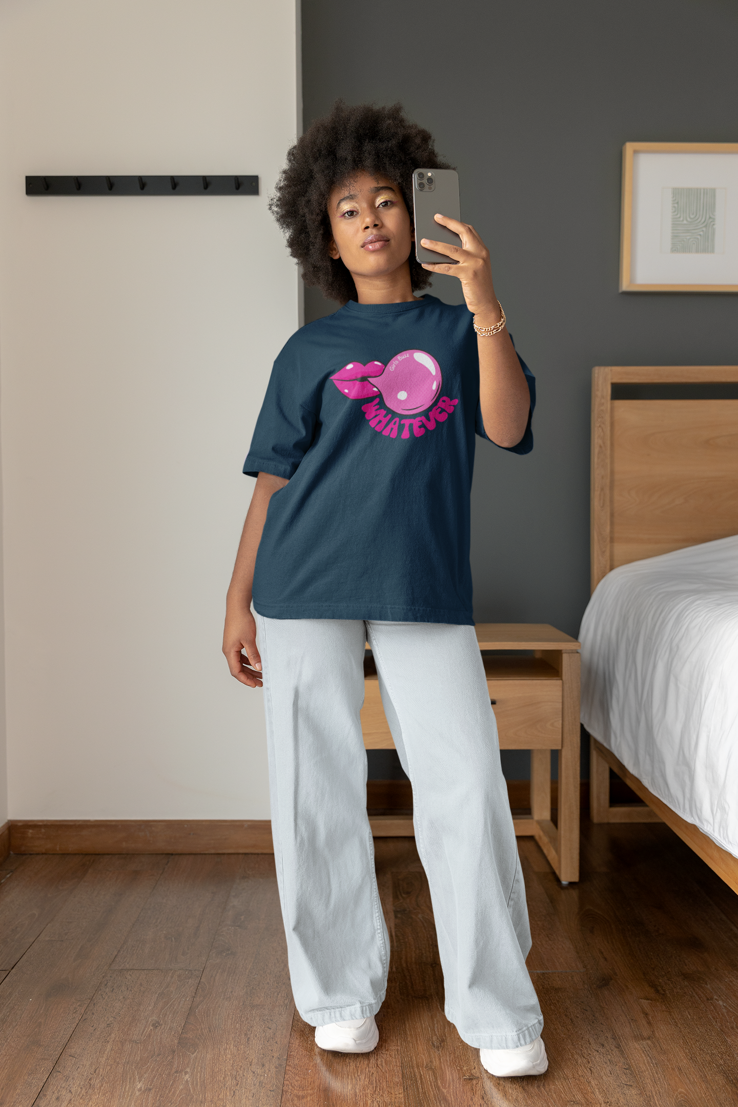 Why let words define your mood when your outfit can do the talking? Our 'Whatever' Women's T-shirt is a tongue-in-cheek masterpiece that captures your 'I don't care, but I kinda do' attitude. The "Whatever" print does more than just adorn your chest; it becomes your daily mantra for deflecting unsolicited advice, and a shrug in the face of societal expectations. So when life asks, "What's your plan?" or "Why aren't you more serious?" simply point to your shirt and say, "Whatever!" You'll look stylish doing it, too.