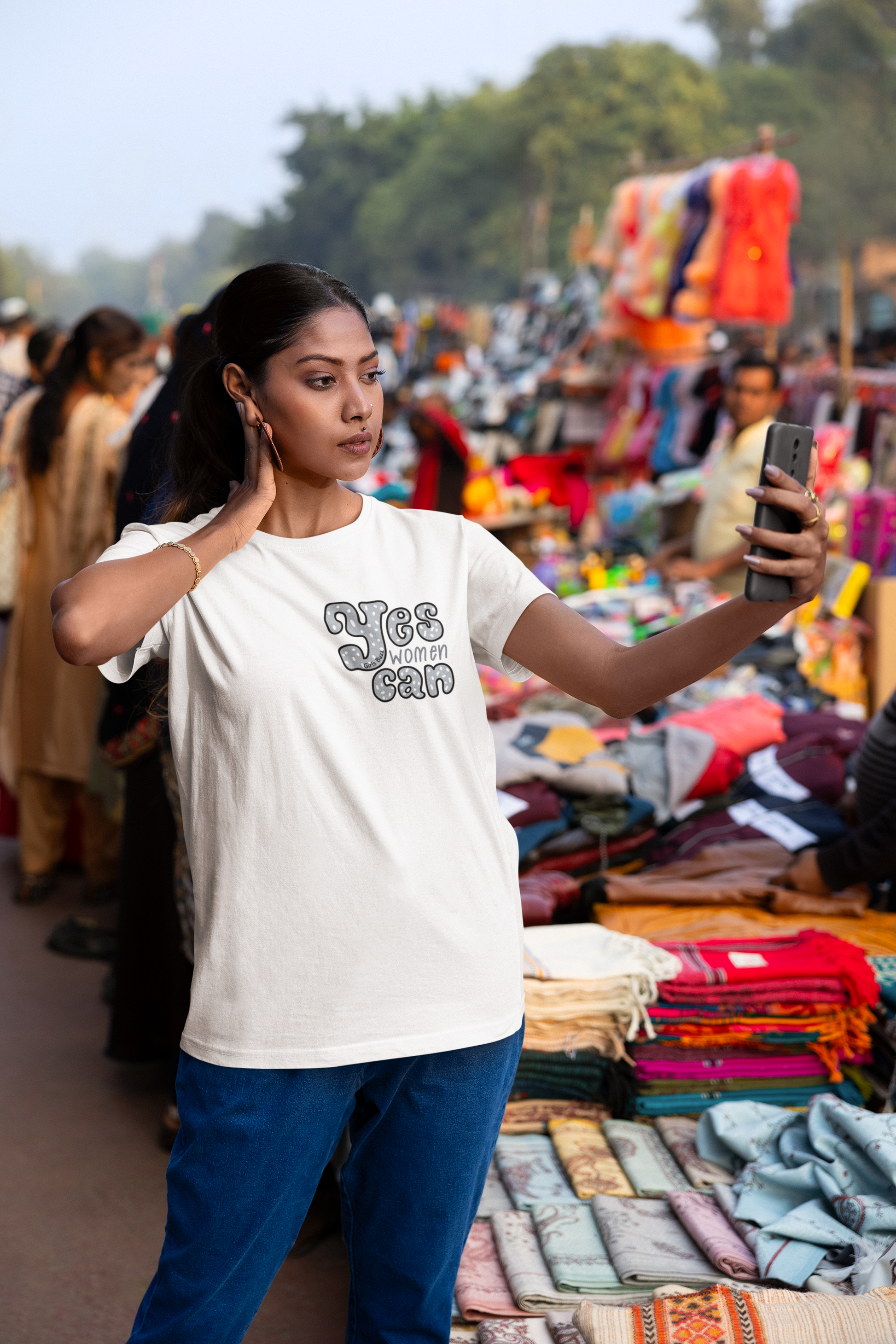 Introducing our empowering "Yes, Women Can" t-shirt – a bold and stylish statement that celebrates the strength, resilience, and limitless capabilities of women. he powerful message, "Yes, Women Can," is prominently displayed in a chic and inspiring font, making a strong statement that resonates with anyone who believes in the potential and power of women.
